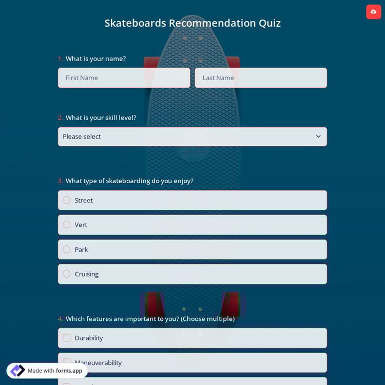 View this skateboards recommendation quiz and click on "use template" after making sure this is what you are looking for.