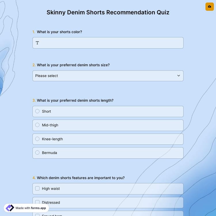 View this skinny denim shorts recommendation quiz and click on "use template" after making sure this is what you are looking for.