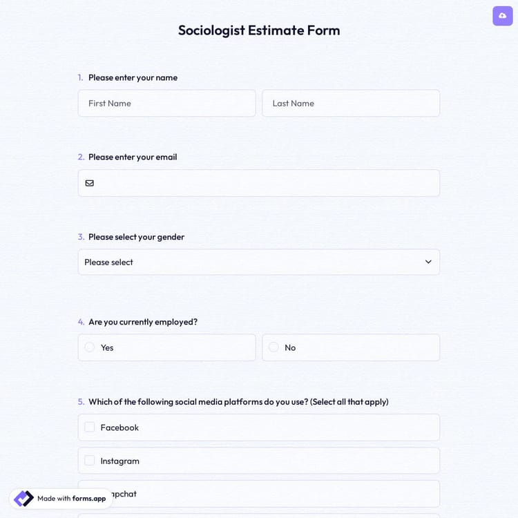 View this sociologist estimate form and click on "use template" after making sure this is what you are looking for.