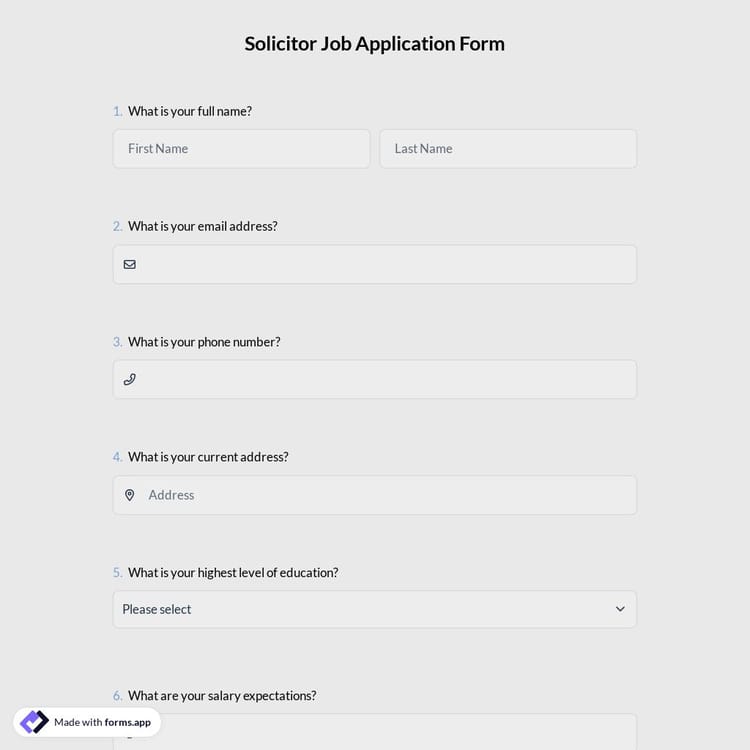 View this solicitor job application form and click on "use template" after making sure this is what you are looking for.