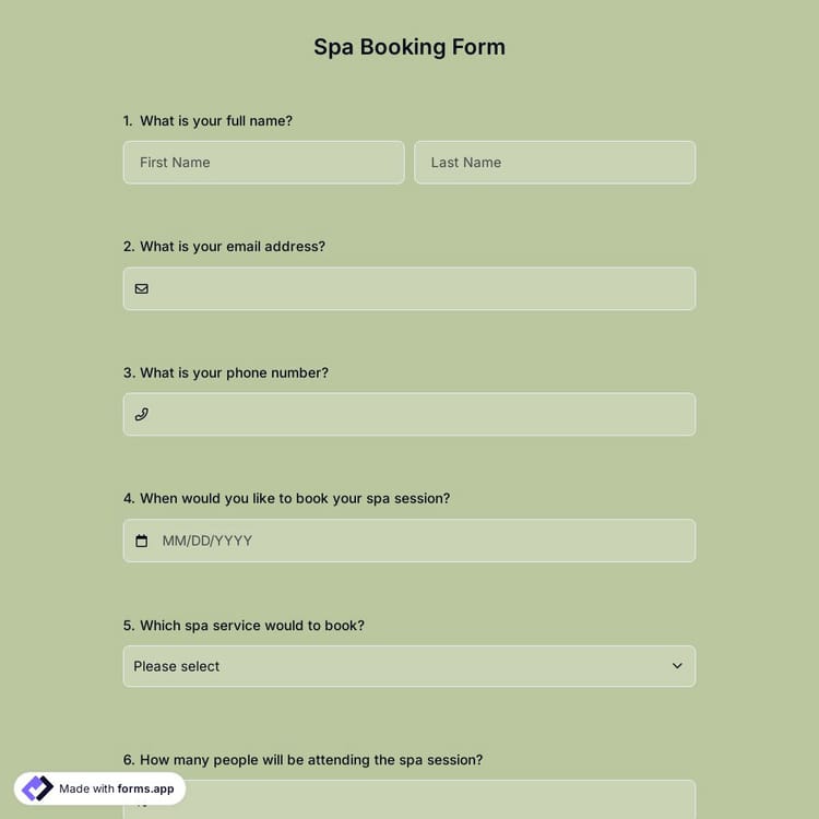 View this spa booking form and click on "use template" after making sure this is what you are looking for.