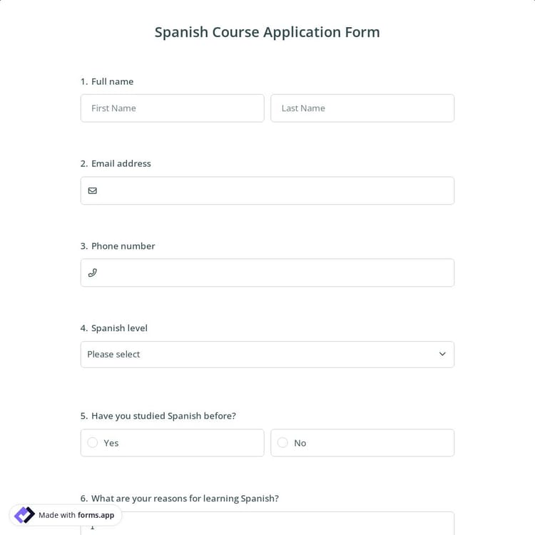 Whether you are creating a job application form or a membership registration form, forms.app offers you premium-quality templates for free. These application form templates come with common questions or form fields you would probably like to include in your form. Naturally, this will save you time and help you create better forms and surveys in a shorter time. So, choose one of our free form samples to create professional online forms today.
