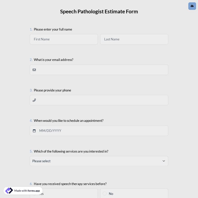 View this speech pathologist estimate form and click on "use template" after making sure this is what you are looking for.