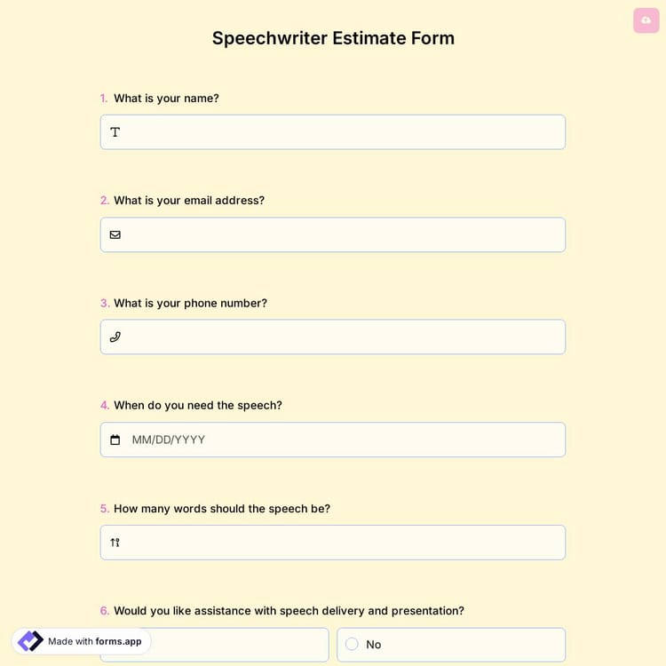 View this speechwriter estimate form and click on "use template" after making sure this is what you are looking for.