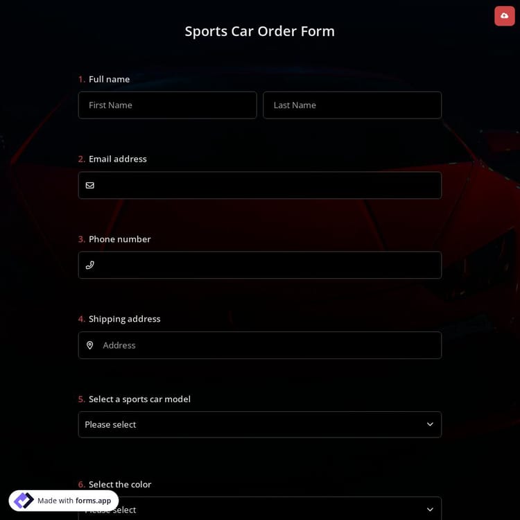 View this sports car order form and click on "use template" after making sure this is what you are looking for.