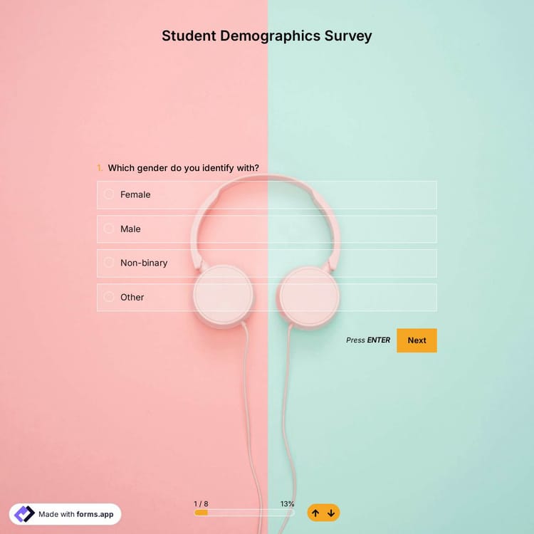 To help you collect demographic information, forms.app offers a student demographics survey template that comes with common topics and questions. But, you may want to know different aspects and details about your students according to your class or school type. So, 7 topics that may help you get better survey results are listed below: