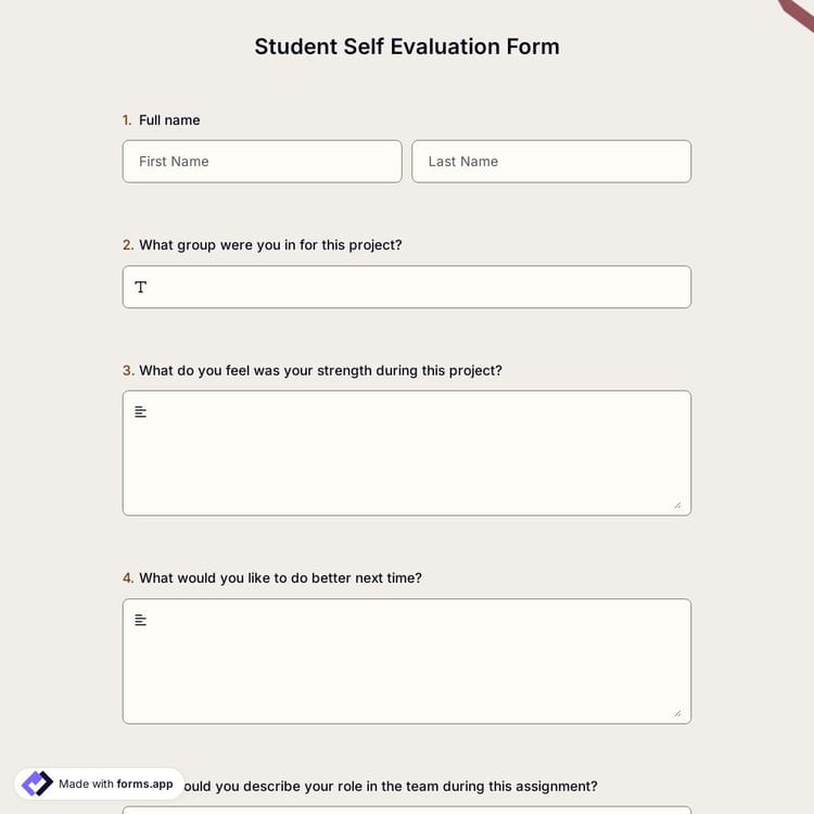 If you are looking for a way to make student self-assessment forms, then you can try to use a form builder tool and collect all the responses online. A tool like forms.app will not only make form creation easier, but it will also provide teachers with statistics and easy-to-navigate record pages. By following these simple steps, you can easily create your own evaluation form for students: