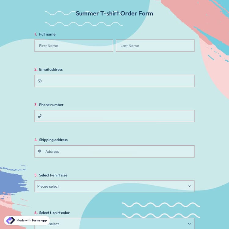 A summer t-shirt order form is the ideal way to collect purchase details, preferences, and payments online. Start simplifying your process today by clicking “Use Template” to get started for free!