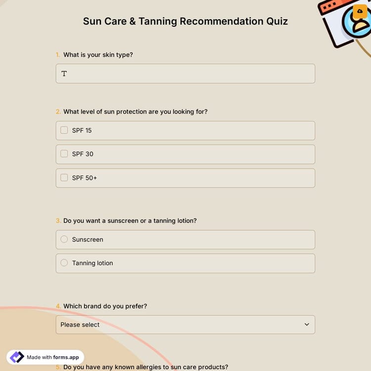 This sun care & tanning recommendation quiz is free and customizable