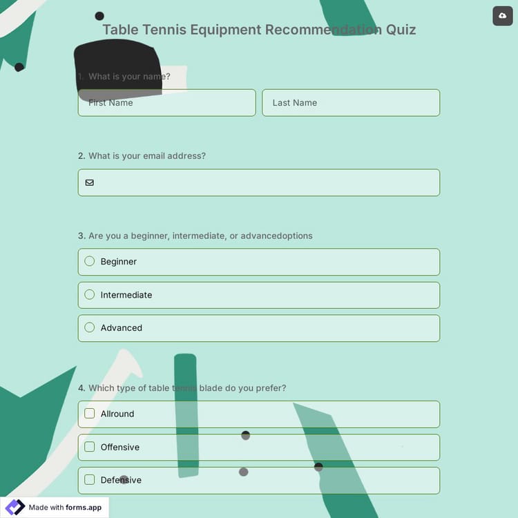This table tennis equipment recommendation quiz is free and customizable