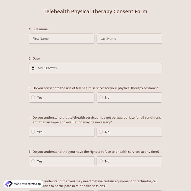 Online forms are an efficient way to secure patient consent for telehealth physical therapy. This online consent form makes it easy to obtain approvals while ensuring patient understanding. Customize this template and simplify your practice today!
