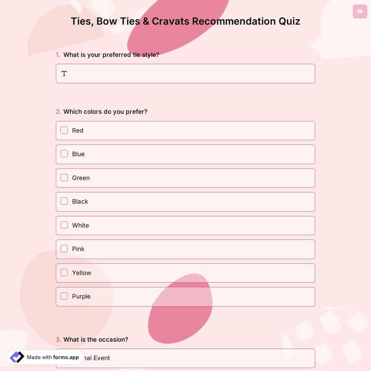 This ties, bow ties & cravats recommendation quiz is free and customizable