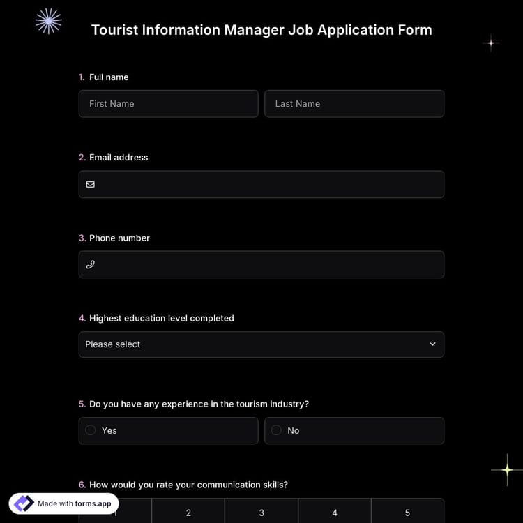 This tourist information manager job application form is free and customizable