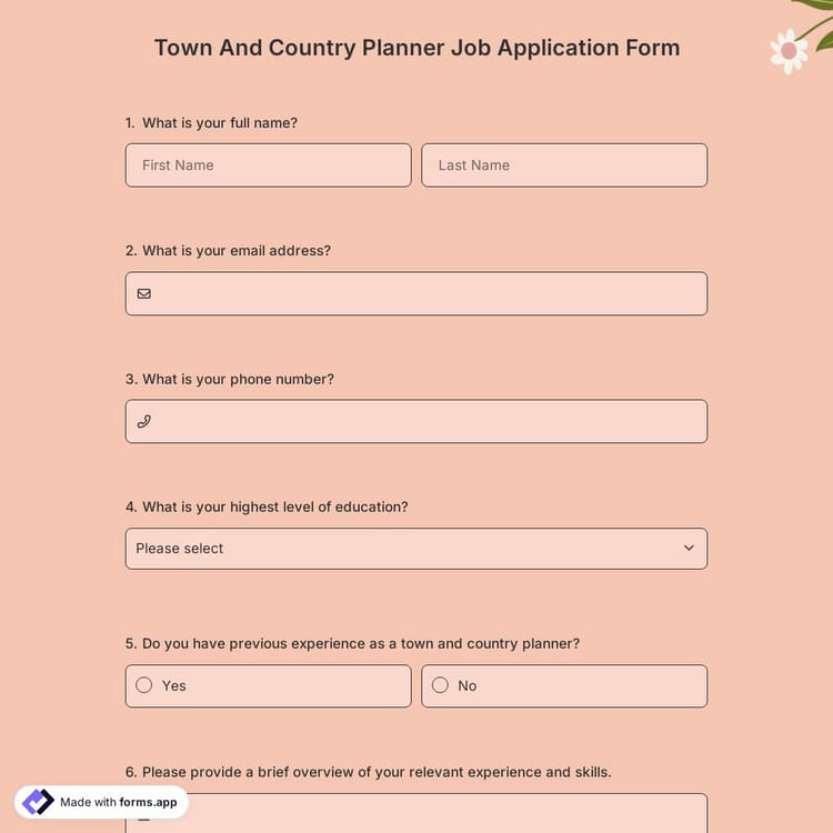 This town and country planner job application form is free and customizable