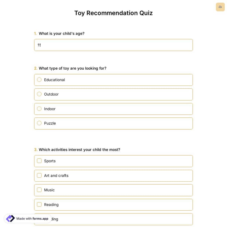 View this toy recommendation quiz and click on "use template" after making sure this is what you are looking for.