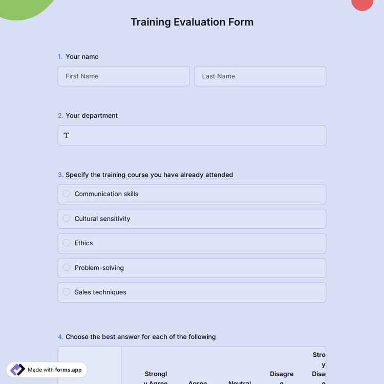 View this training evaluation form and click on "use template" after making sure this is what you are looking for.