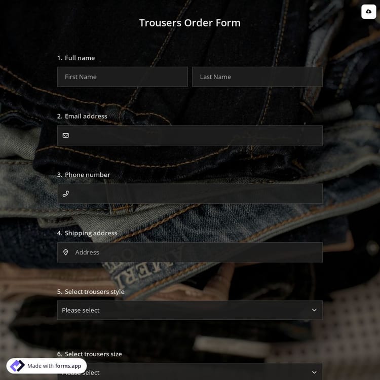 View this trousers order form and click on "use template" after making sure this is what you are looking for.