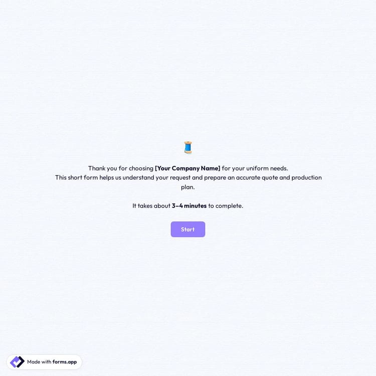 Allow customers to upload their logo or design files directly through the form. This makes it easier for you to place the logo correctly on uniforms and prepare accurate production orders.