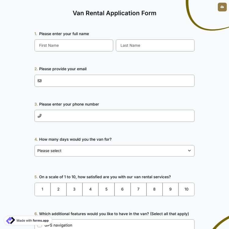 View this van rental application form and click on "use template" after making sure this is what you are looking for.