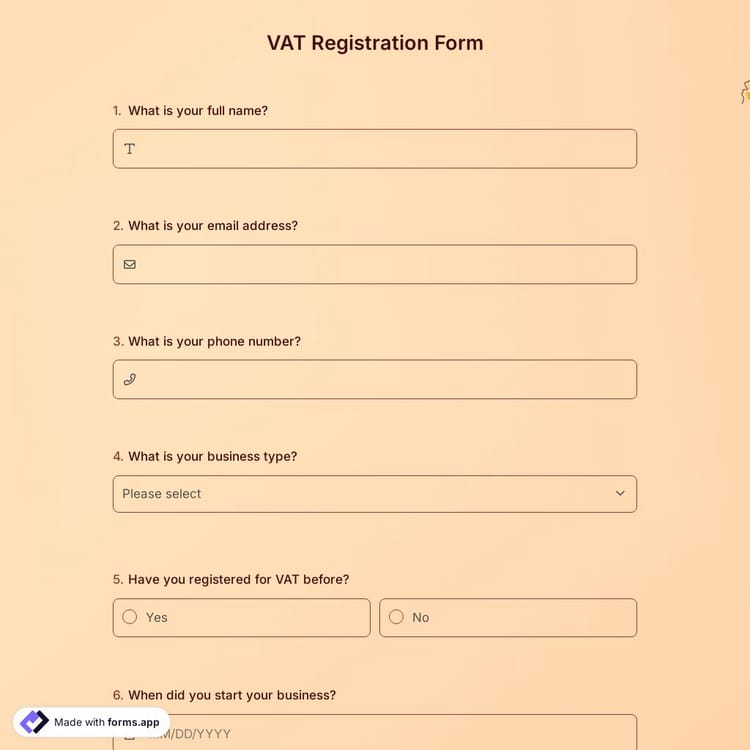 View this vat registration form and click on "use template" after making sure this is what you are looking for.