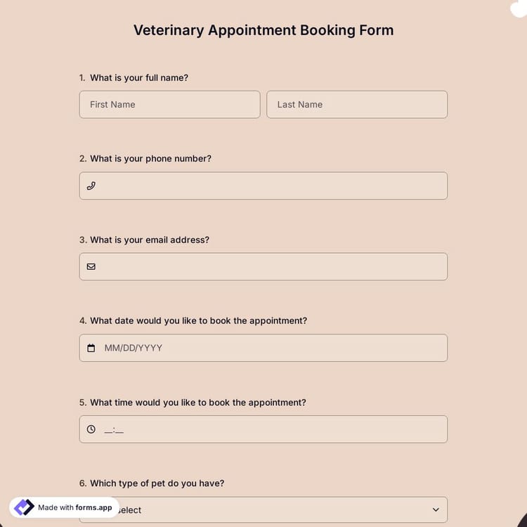 View this veterinary appointment booking form and click on "use template" after making sure this is what you are looking for.