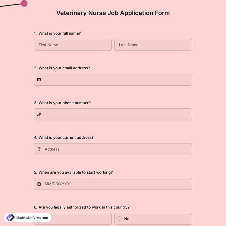 View this veterinary nurse job application form and click on "use template" after making sure this is what you are looking for.