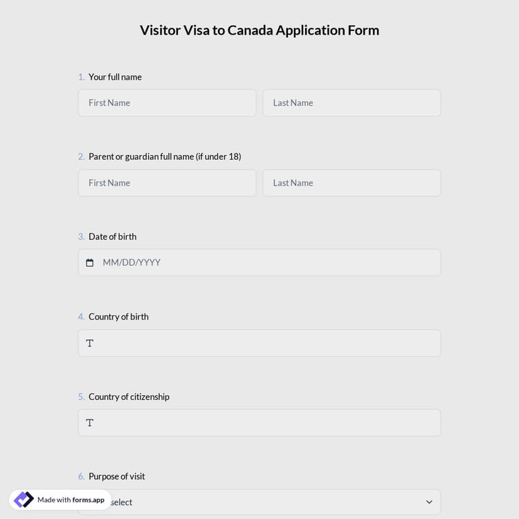 Online forms are a great chance to collect essential details for a visitor visa application to Canada. Use this free Visitor Visa to Canada form template to simplify the process for applicants and streamline data management. Start today for free!