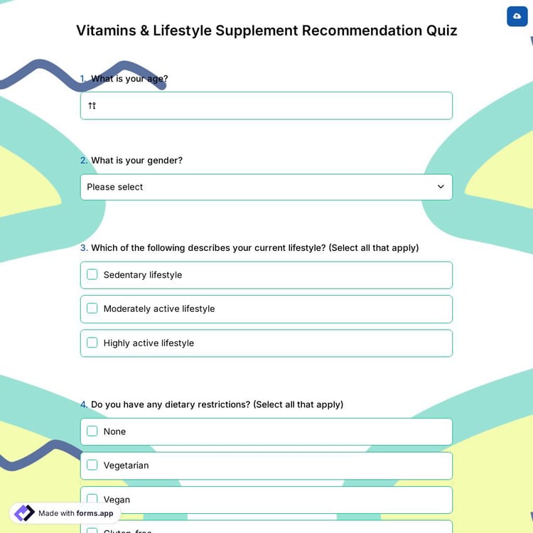 This vitamins & lifestyle supplement recommendation quiz is free and customizable
