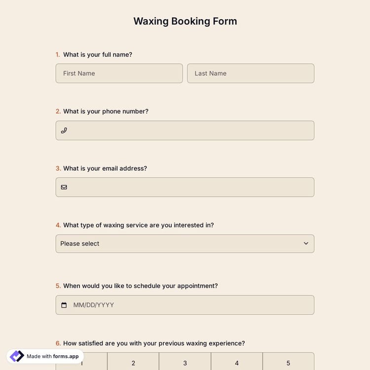 View this waxing booking form and click on "use template" after making sure this is what you are looking for.