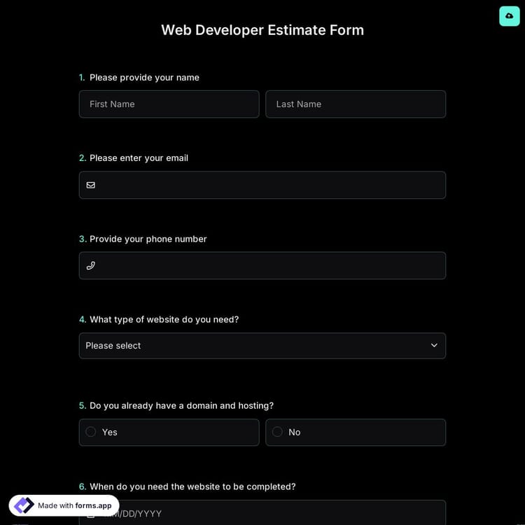 On forms.app, you can easily create an online form to automatically show a price estimate upon data entry.