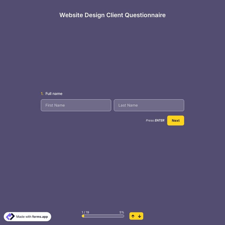Website design customer surveys are a good way to establish open and effective communication between the client and the web design team. Create your survey professionally with forms.app's free questionnaire template to understand your customers better!