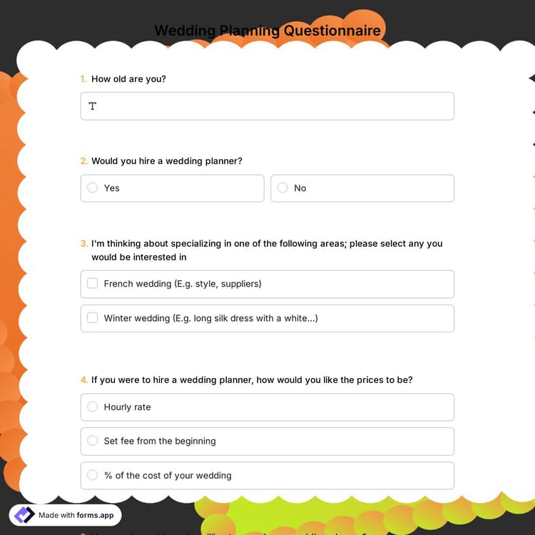 View this wedding planning questionnaire and click on "use template" after making sure this is what you are looking for.