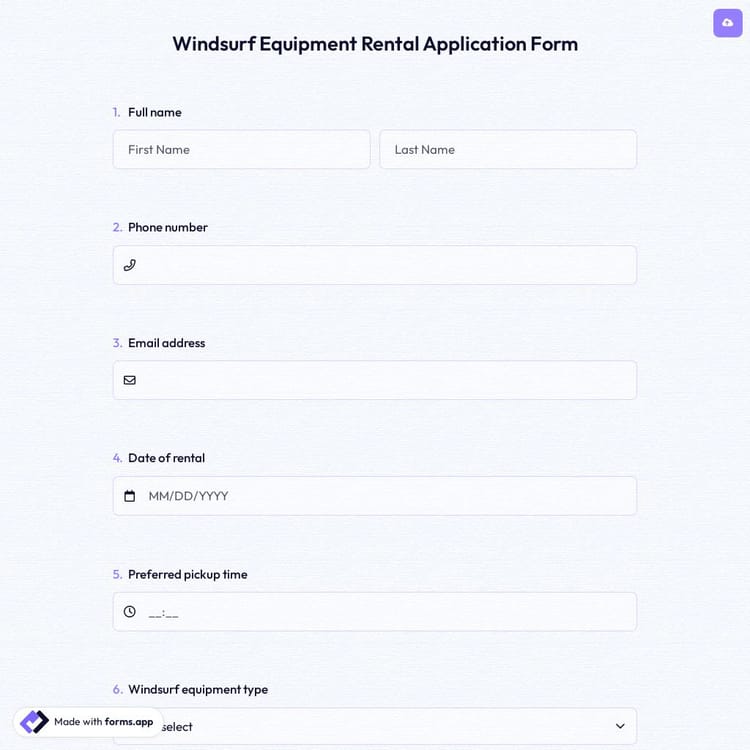 View this windsurf equipment rental application form and click on "use template" after making sure this is what you are looking for.