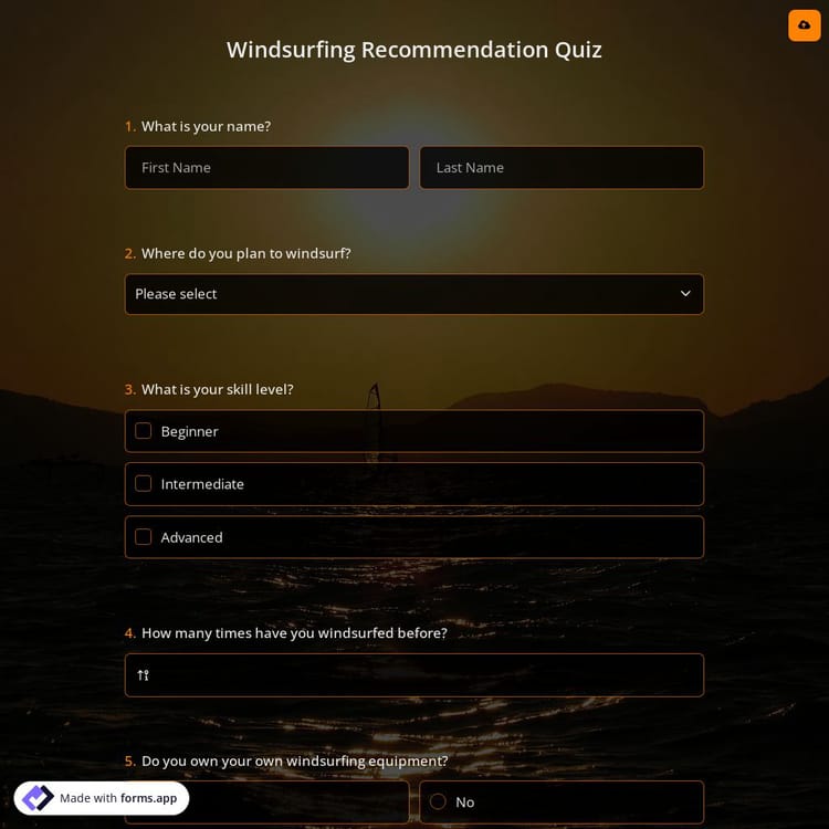 View this windsurfing recommendation quiz and click on "use template" after making sure this is what you are looking for.