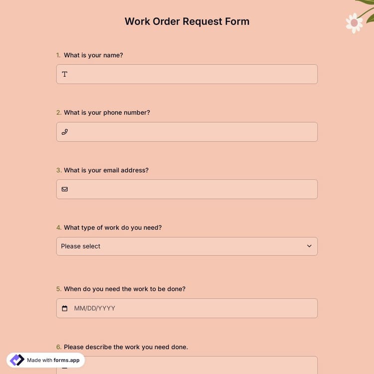 Open your work order request form template on forms.app
