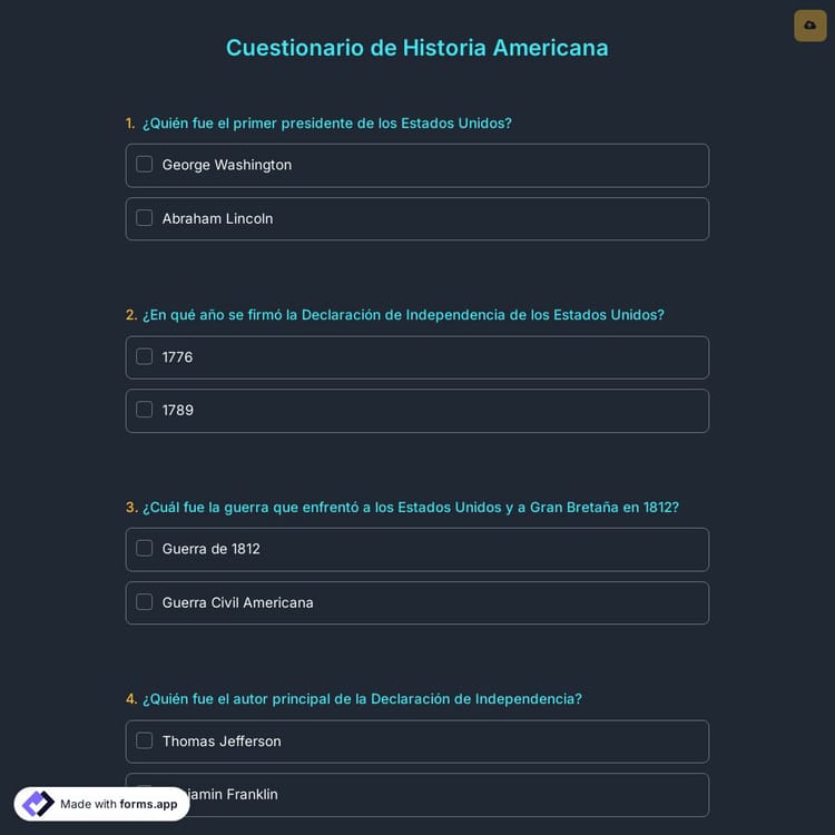 Preguntas frecuentes sobre Cuestionario de Historia Americana