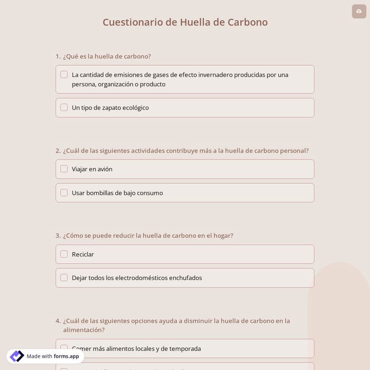 Este cuestionario de huella de carbono es gratuito y personalizable