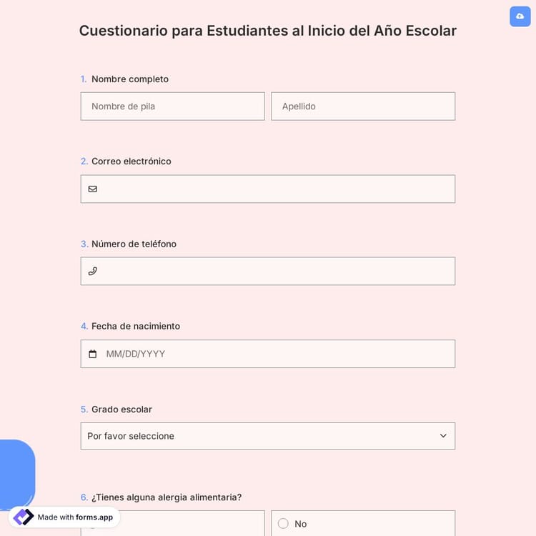 Visualiza este cuestionario para estudiantes al inicio del año escolar y haz clic en "usar plantilla" después de asegurarte de que es lo que estás buscando.