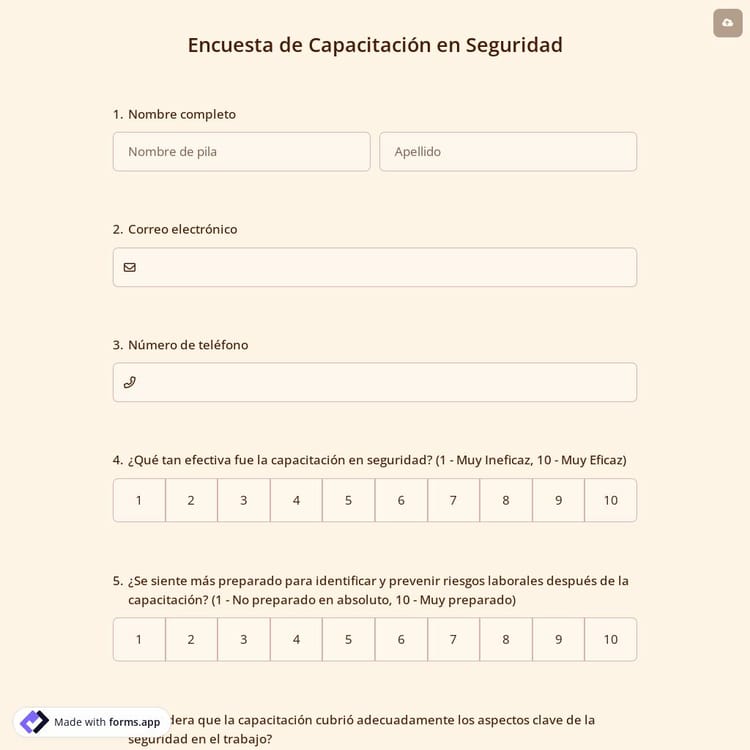 Este encuesta de capacitación en seguridad es gratuito y personalizable