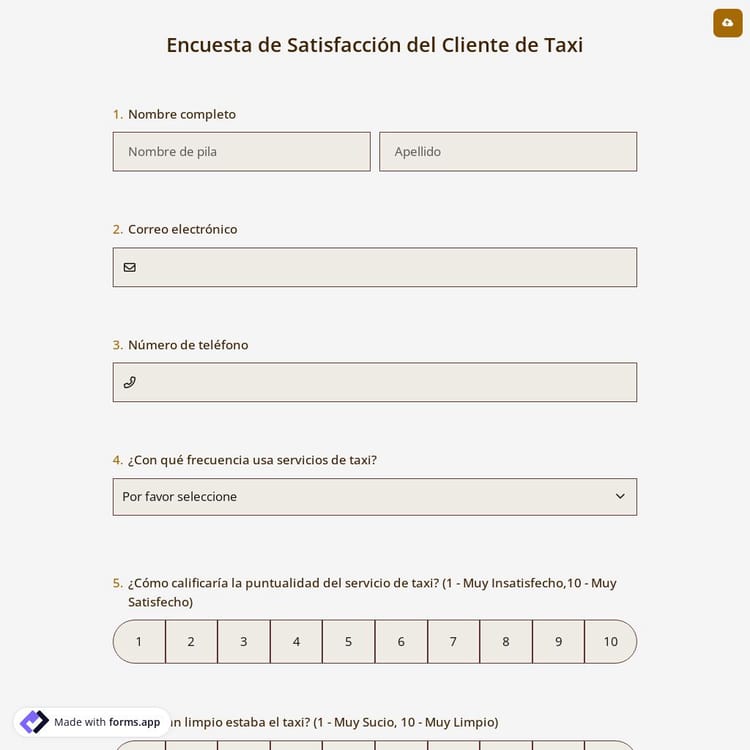 Visualiza este encuesta de satisfacción del cliente de taxi y haz clic en "usar plantilla" después de asegurarte de que es lo que estás buscando.