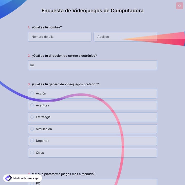 Visualiza este encuesta de videojuegos de computadora y haz clic en "usar plantilla" después de asegurarte de que es lo que estás buscando.