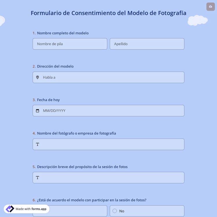 Visualiza este formulario de consentimiento del modelo de fotografía y haz clic en "usar plantilla" después de asegurarte de que es lo que estás buscando.