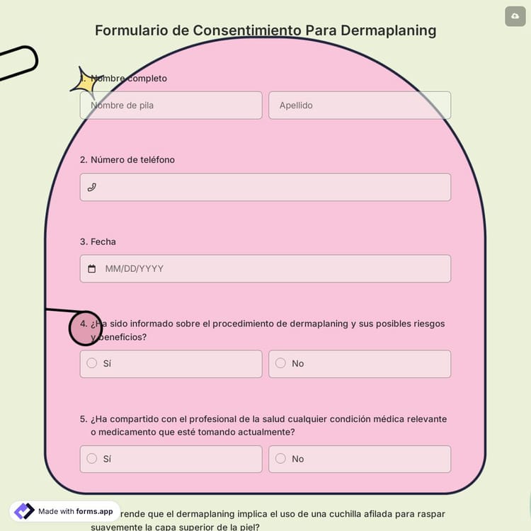 El dermaplaning es un tratamiento de belleza popular, pero es importante obtener el consentimiento de sus clientes antes de comenzar el tratamiento. Puede ser difícil realizar un seguimiento de quién ha dado su consentimiento y quién no, especialmente cuando utiliza formularios en papel y está ocupado con otros clientes. Utilice un formulario de consentimiento de dermaplaning en línea para obtener el consentimiento de sus clientes de forma más fácil y rápida.