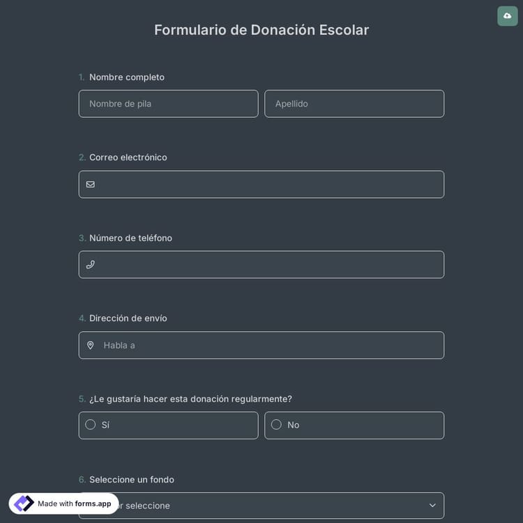 Agrega o elimina preguntas con la interfaz de arrastrar y soltar de forms.app y adapta el estilo a tu marca.