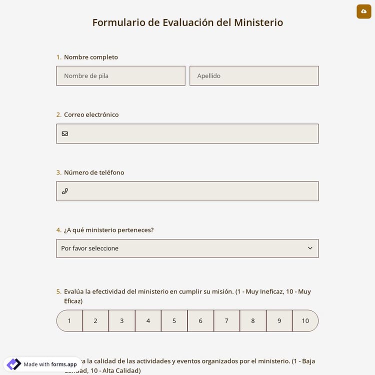 Este formulario de evaluación del ministerio es gratuito y personalizable