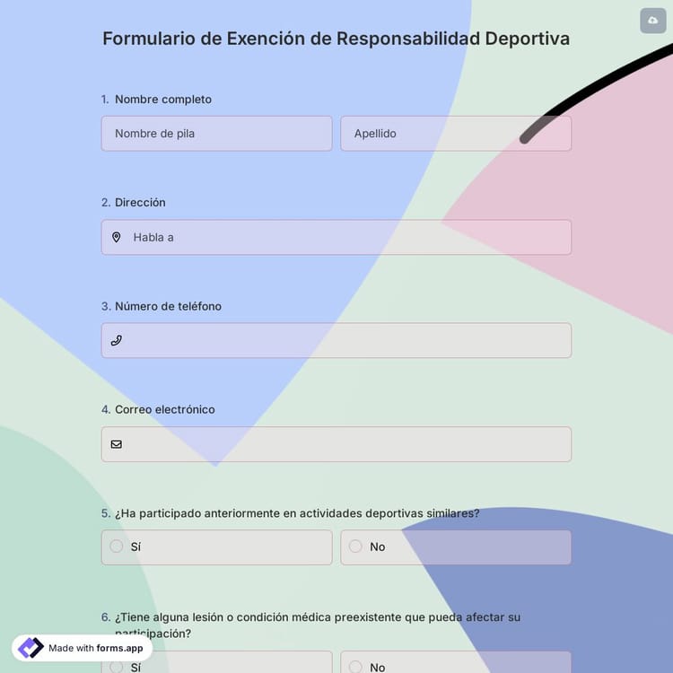 Si quien tiene que firmar este tipo de formulario de exención de responsabilidad es un niño menor de edad, sus padres o tutores deben firmar el formulario y declarar que entienden perfectamente los riesgos de lesiones graves y que su hijo se atendrá a las normas. En función de tus objetivos, en forms.app podrás personalizar fácilmente tu formulario de exención de responsabilidad deportiva en cuanto a diseño, términos y otros contenidos.