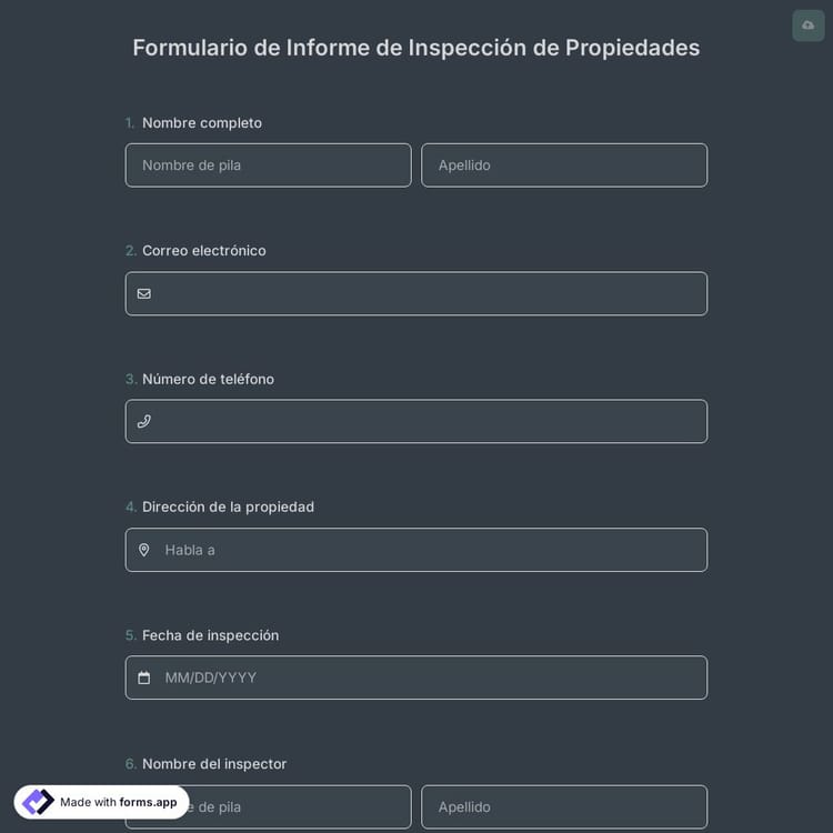 Un formulario de inspección de propiedad es simplemente un documento para evaluar el estado actual de una propiedad. El formulario de inspección generalmente cubre diferentes aspectos de la propiedad, incluyendo el interior y el exterior del edificio, la funcionalidad de los sistemas eléctricos e hidráulicos y el mantenimiento general de la propiedad.