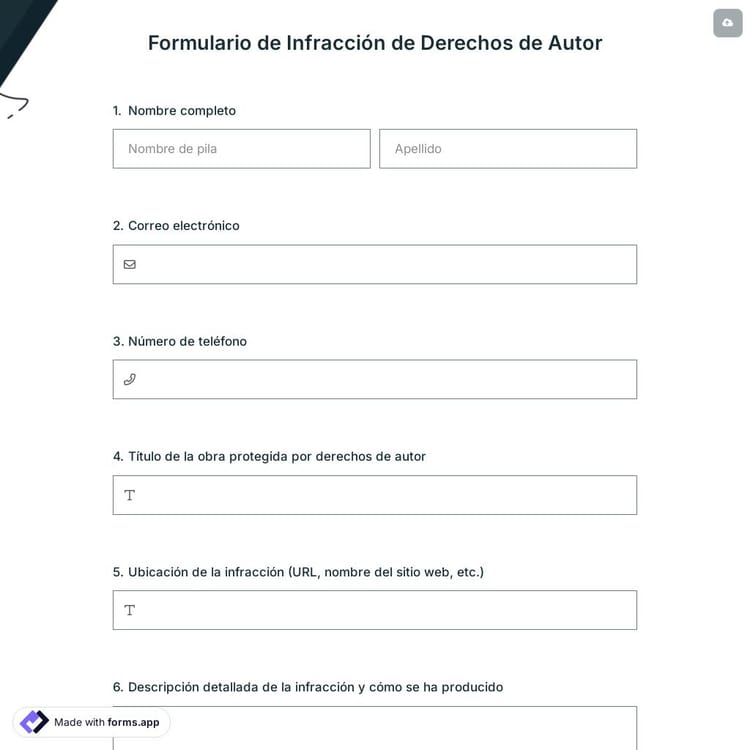 Visualiza este formulario de infracción de derechos de autor y haz clic en "usar plantilla" después de asegurarte de que es lo que estás buscando.