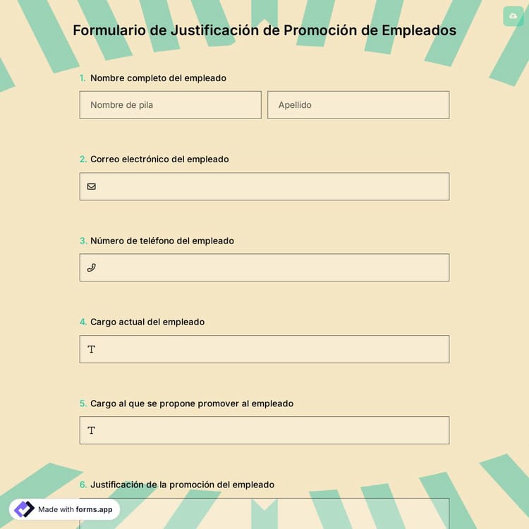Este formulario de justificación de promoción de empleados es gratuito y personalizable