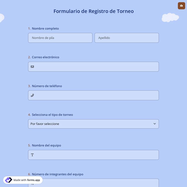 Visualiza este formulario de registro de torneo y haz clic en "usar plantilla" después de asegurarte de que es lo que estás buscando.